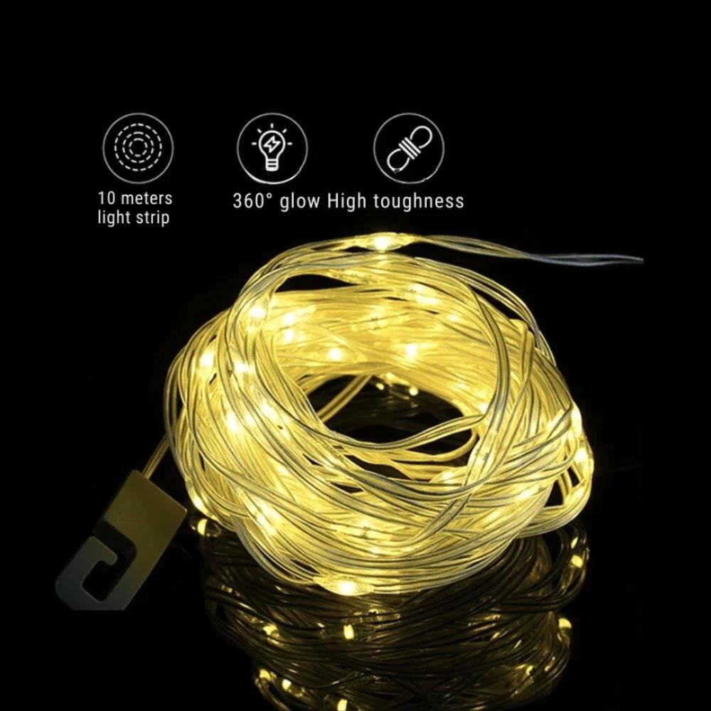 🔹 نوع الإضاءة: سلك إضاءة LED متعدد الاستخدامات – مثالي للتخييم، الرحلات، الطوارئ، وتزيين الحدائق أو المنزل.